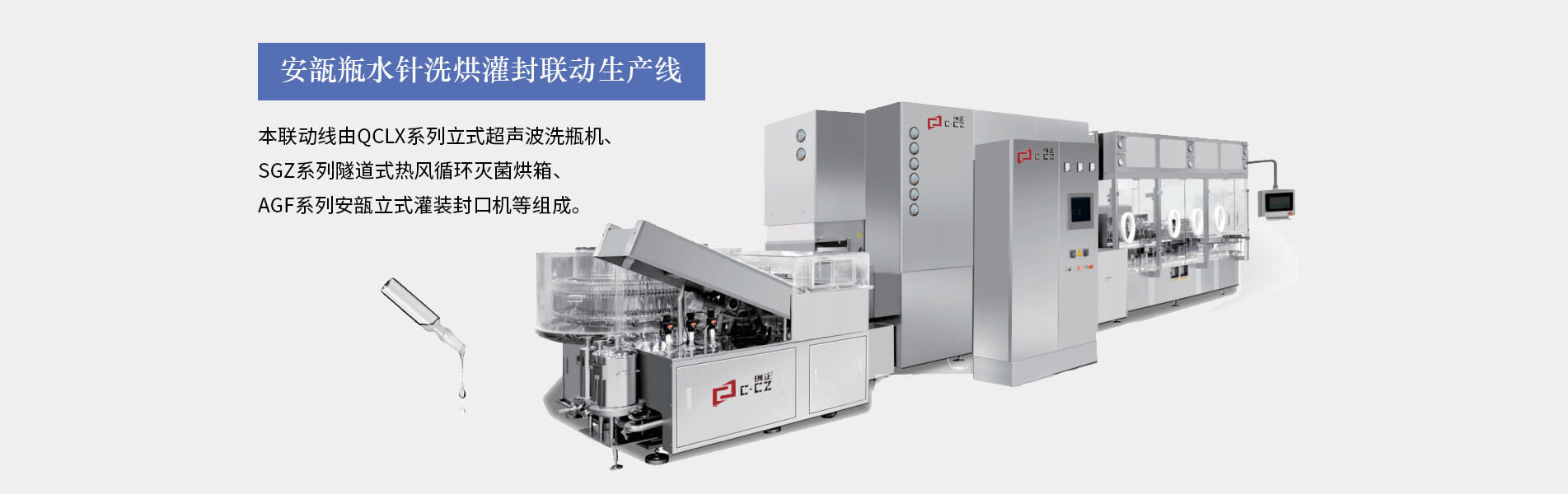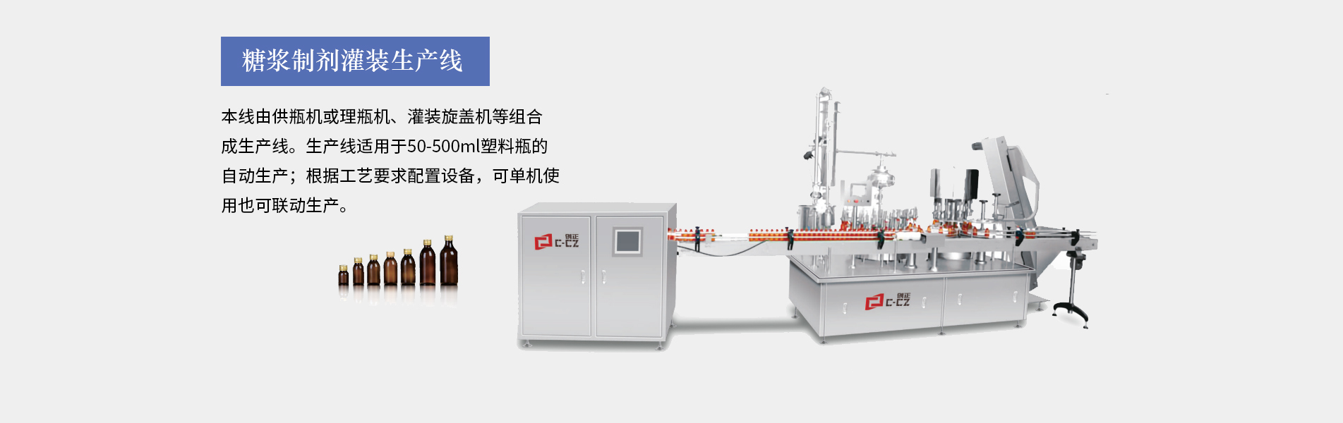 糖漿灌裝生產線適合30ML以上口服液的灌裝生產,由供瓶機、直線式灌裝軋(旋)蓋機、立式貼標機等設備組成,可全自動完成灌裝、上蓋、旋(軋)蓋、貼標等工序。主要用于制藥、食品、化工的的各種液體物料的灌裝聯(lián)動生產。本生產線完全符合GMP要求。糖漿灌裝生產線特點裝量特征:無滴漏、不起泡、不飛濺。運行特征:運行穩(wěn)定,噪音小;灌裝精確,能耗少,破瓶率低,成品合格率高性能特征:整條生產線可單機控制和聯(lián)鎖控制。洗瓶...