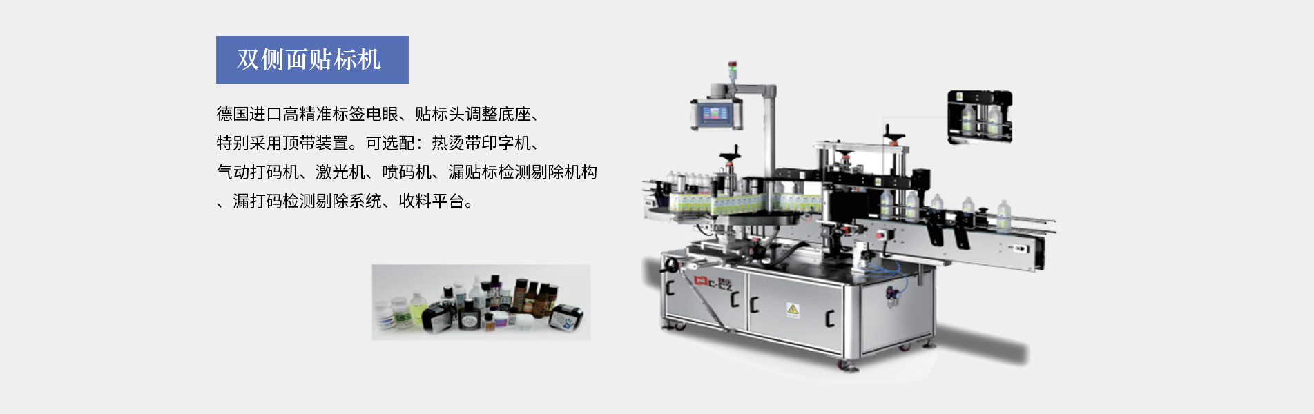 本公司生產的口服液貼標機適合細長形圓柱體瓶圓周表面的不干膠標簽自動貼標,口服液瓶等,采用彩色人機界面,離合器設計,使標簽張緊力更加穩(wěn)定,便于提高貼標精度3、西門子PLC控制,德國、日本光眼,高精度步進,貼標速度可達30米/分鐘,可加裝色帶打碼機、或者熱轉印機??诜嘿N標機多為圓瓶貼標機適用于瓶身長,直徑的產品(玻璃塑料都可以,材質不限),同時可加工粉針劑瓶、采血管、水針劑瓶、眼藥水瓶、圓管等,專門針對...